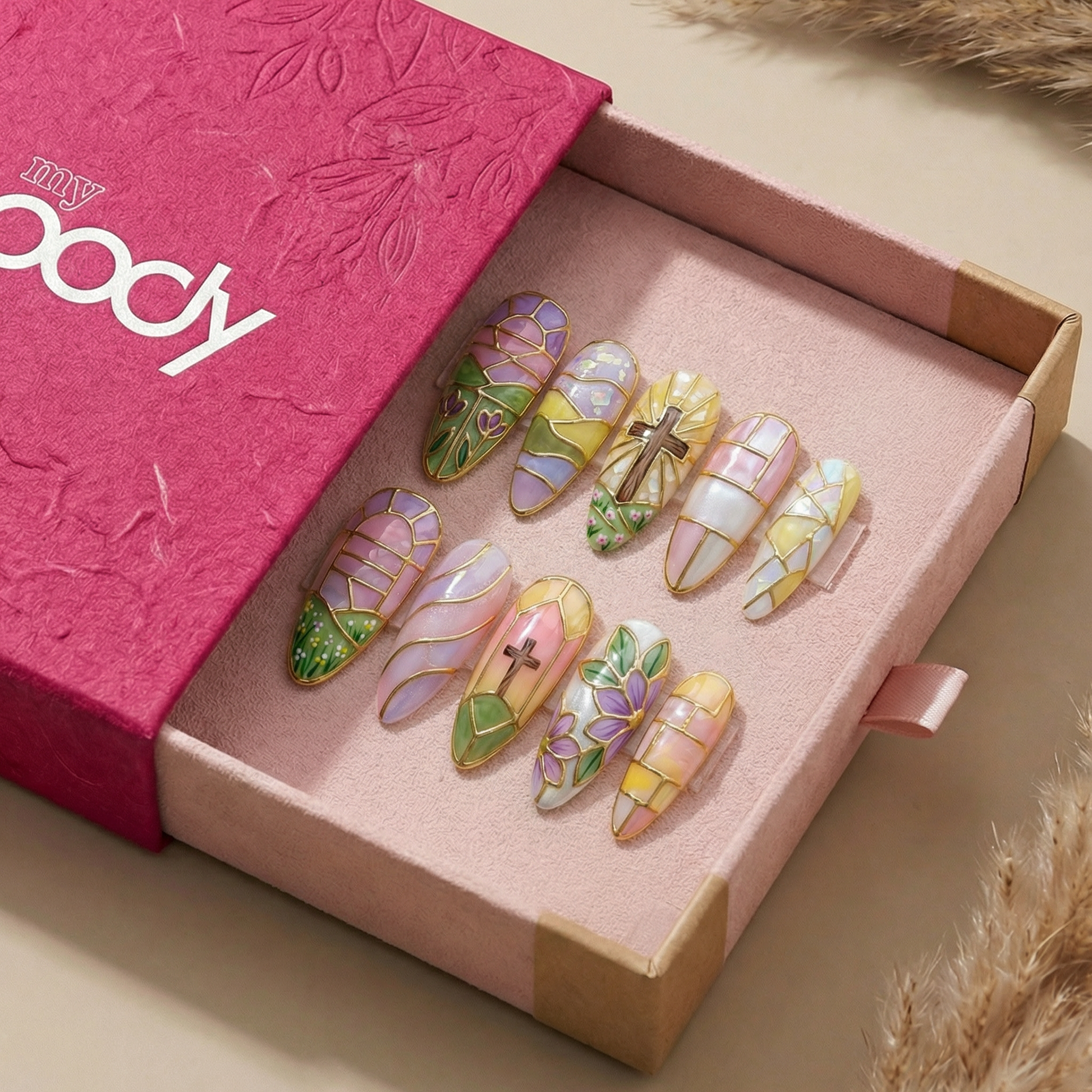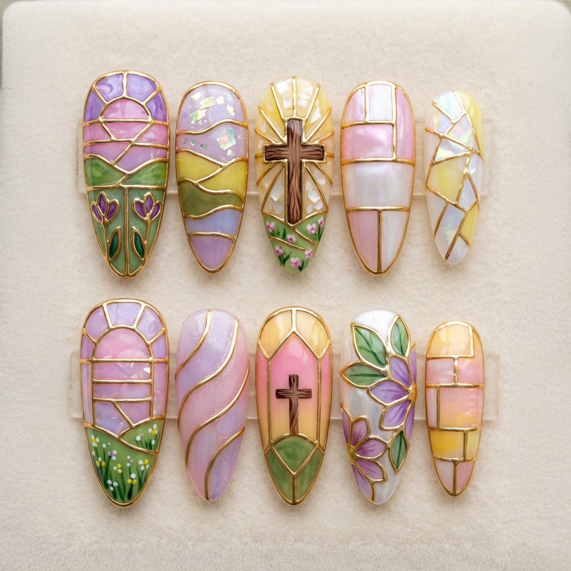 - 10 handmade artisan press-on nails