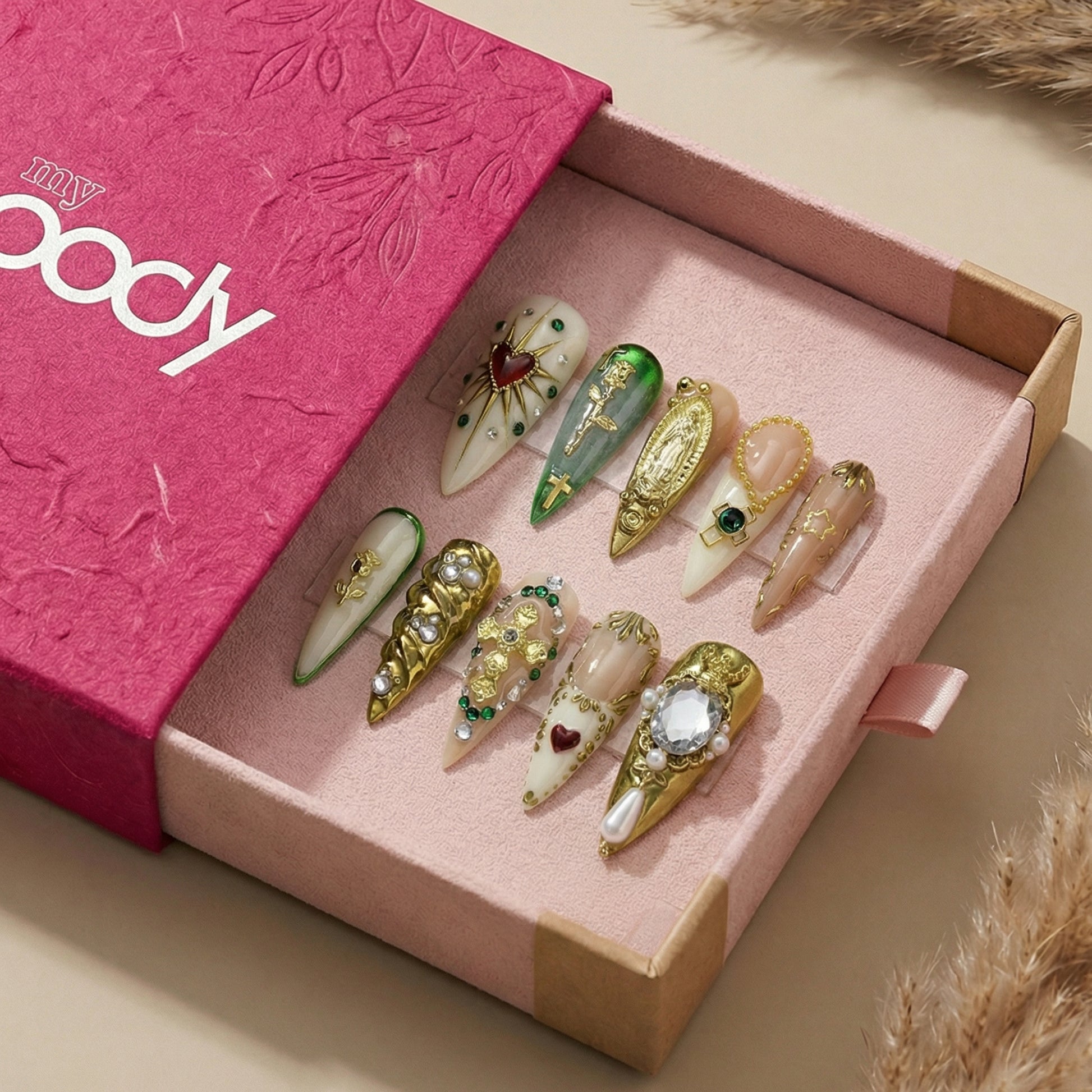 - 10 handmade artisan press-on nails