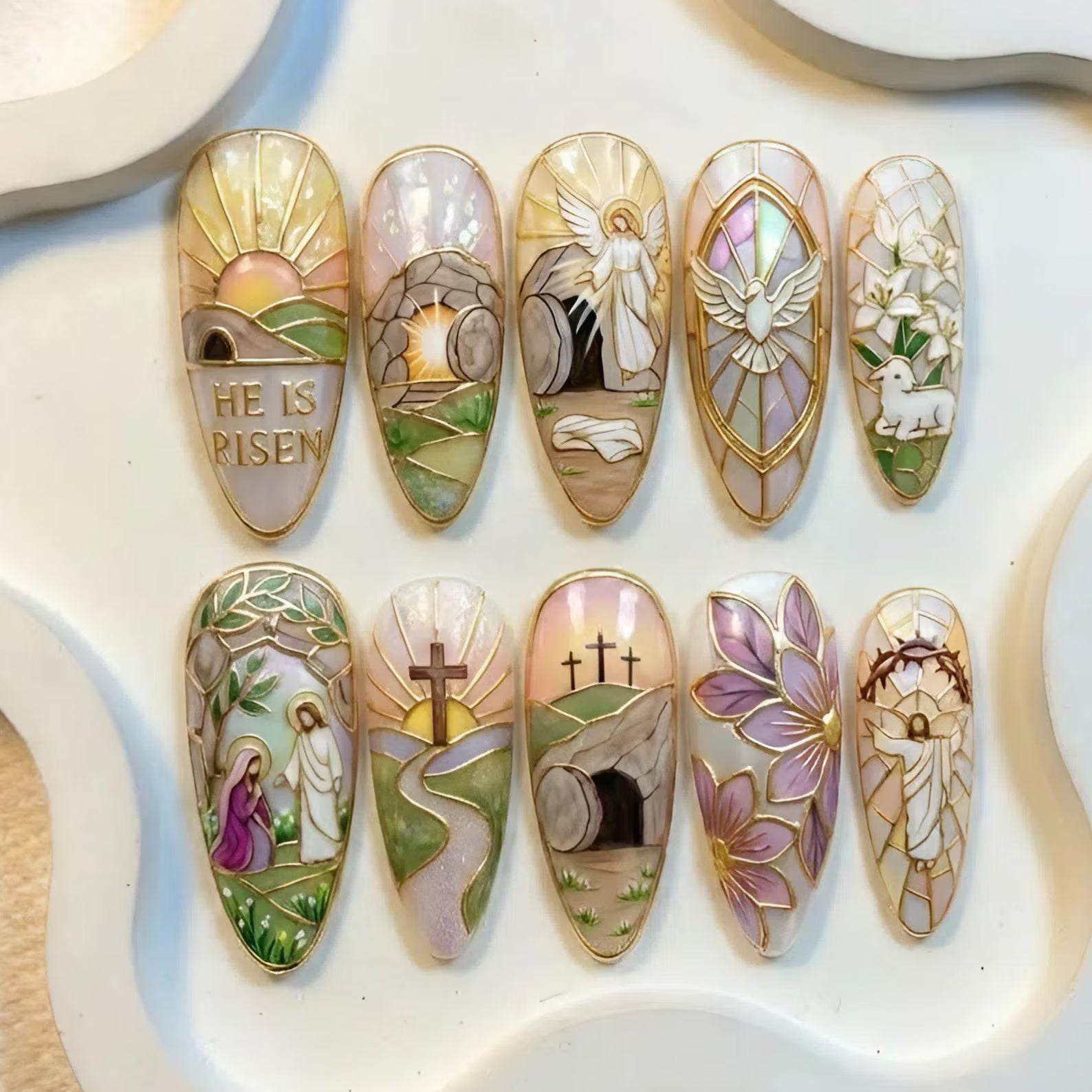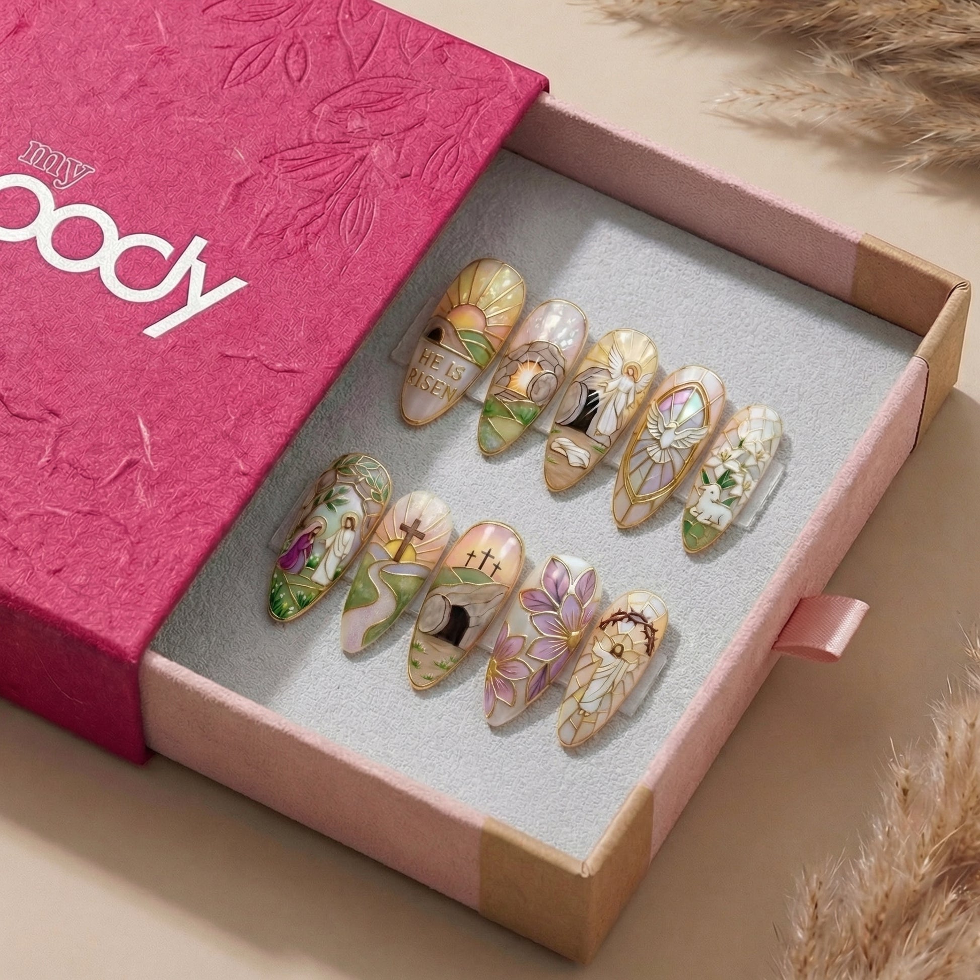- 10 handmade artisan press-on nails